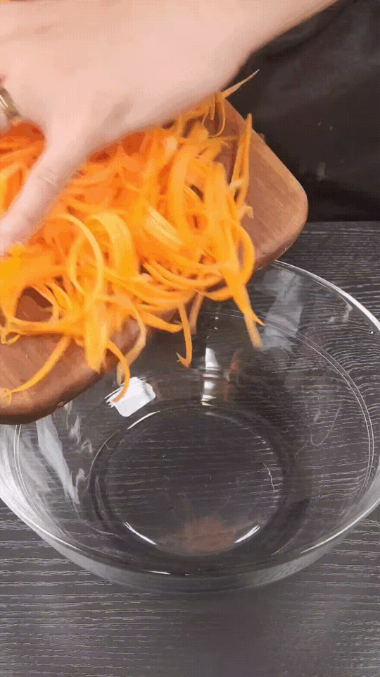 2. 당근을 채 썰어줍니다. 칼로 썰어도 되지만 균일하고 얇게 썰려면 채칼로 하시는 게 훨씬 쉽습니다.